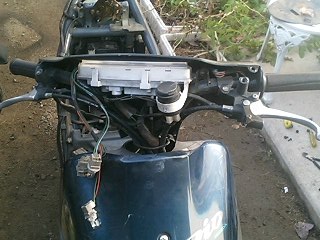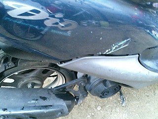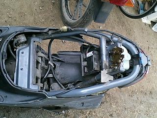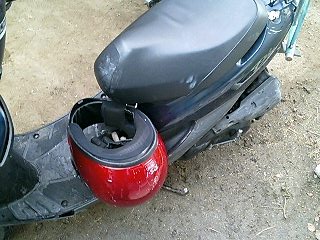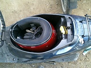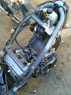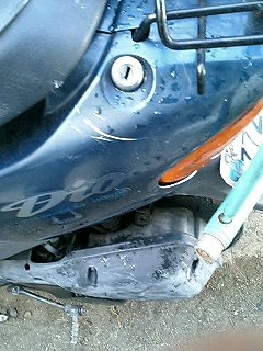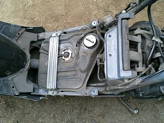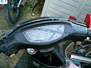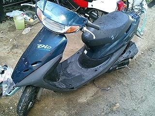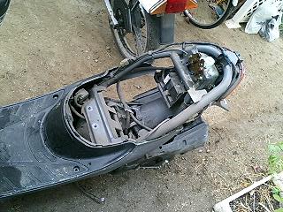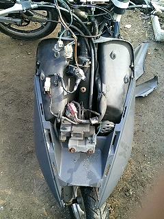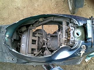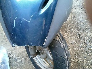 ババババババババババババ… 易とも簡単にエンジンが始動したではないですかw これは思ってもみなかった展開です。 とりあえず5分程アイドリングさせておきます。その間、異音や吹けあがりなどチェック。 こうなればあとはブレーキ系と外装の保守でとりあえずはノーマル実動車になるわけです。 で、運転してみて思ったことは、とにかく安定感ない!ということですw スクーターなんかろくに乗ったことないので エンジンは全く問題ないです。40キロほどまでスムーズに加速します。ただ、そこからは少しずつ加速していき、52キロが限界でした。 ブレーキは後輪が効きが弱いですね。少々不安を感じるので、これも社外品に変えます。前輪はまだいけるでしょう。 あと、カウルが外れているので走行中にガタガタとやかましいです。いかにもポンコツって感じがよろしくないですね。 初走行インプレはこんなところでしょうか。