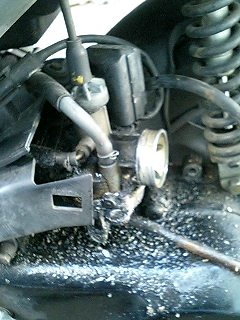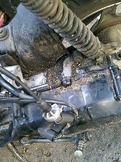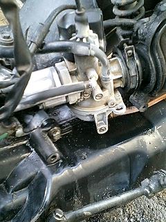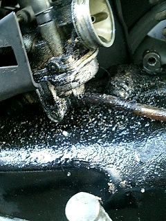 次はキャブレターを外したいと思います。しかし本当に汚い。オイルでギトギトになったところに砂が付いています。