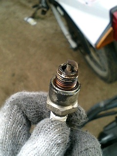 プラグをチェックしてみました。ノーマルなので、やけ具合もベストです。