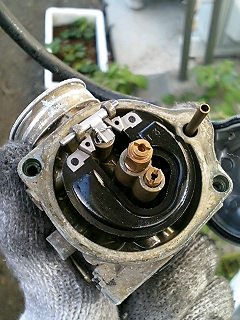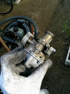 取り外したキャブレターです。まだちょっと汚いですが、とりあえず分解してみます。