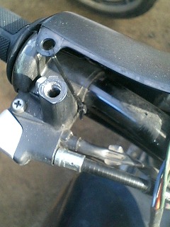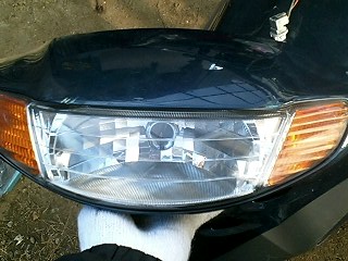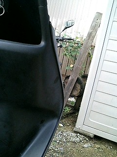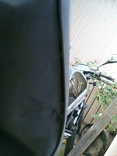 洗ったカウルを日干ししている間に、ヘッドライト周りのガタの修正作業です。 右のライトですが、どうも変な隙間ができているのでよく見てみると、完全に取り付け方を間違えてます。