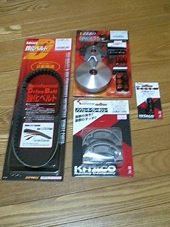 とりあえずこれだけ購入してきました。 ハイスピードプーリーキットと強化Vベルト、リアブレーキシュー、ウェイトローラーです。 早く取り付けたいとワクワクしていますが、もう外は暗いので今日はここまでです。