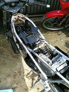 タンクとシート周りを外した状態。ゴミみたいに見えます。