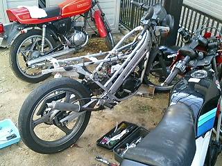 なんにも残ってません。これに小さなタンクとシートで走れば注目度かなり高いはずw
